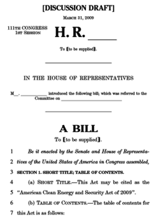 (2009, April 6). The American Clean Energy and Security Act of 2009. Retrieved from https://www.buildinggreen.com/blog/american-clean-energy-and-security-act-2009