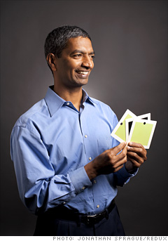 Middle: Bloom Energy CEO Sridhar holding coated ceramic wafers that are used in the solid-oxide fuel cell (photo: Jonathan Sprague)
