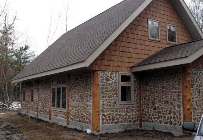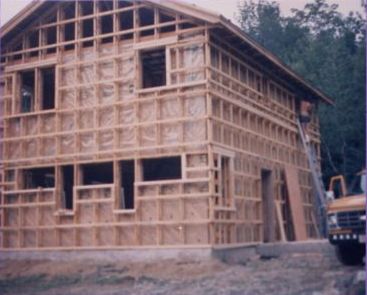 The "bones" of a house can be logs or heavy timbers or light sawn-lumber repetitive framing, or earth or stone. Sticks, stones and dirt are the traditional materials from which we fashioned human shelter. Earthen walls work best in dry desert-like climates, where earth predominates and thermal mass may be more important than thermal insulation. Stone is appropriate in mountainous or coastal locales where the bones of the earth are easily available and winds are harsh. But in much of the temperate zone of the earth, at least where we have not already cleared the virgin forests, wood is the most available, abundant and useful material – and it's generationally-renewable if we care for our woodlands.