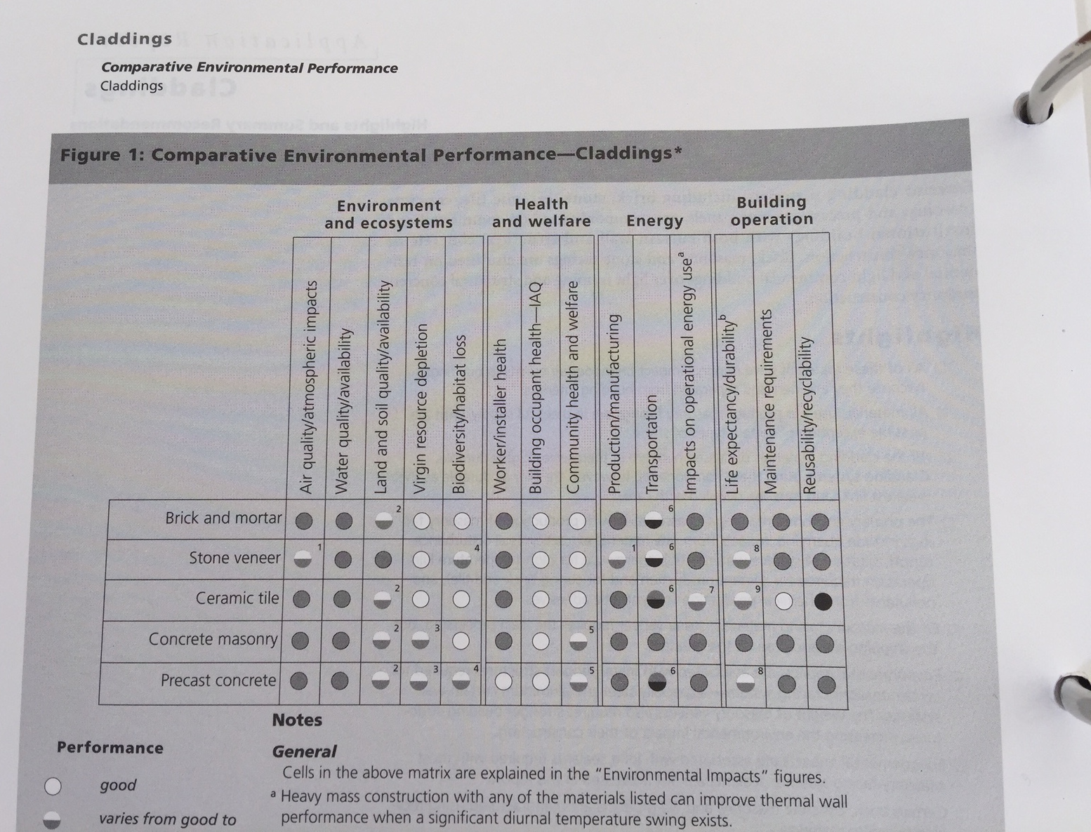 And the committee really got a big boost with a million-dollar grant from the EPA to research the life-cycle impacts of materials and produce the Environmental Resource Guide. The Environmental Resource Guide was the first attempt to analyze the life cycle of building materials and understand their impacts in a way that would be useful to inform the decision-making process of designers.