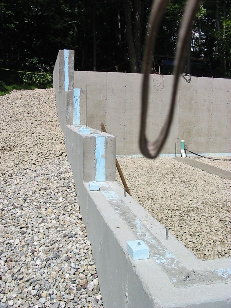 Other, less conventional foundation options that are available for consideration include the All-Weather Wood foundation (pressure-treated sills, framing & plywood on a crushed stone base), insulated pre-cast concrete walls (that require heavy shipping), and the increasingly popular Insulated Concrete Forms (ICFs). But the latter puts the foam in the worst possible location--both outside and inside, where it's vulnerable to all the potential dangers--and provides little dynamic thermal mass factor.
