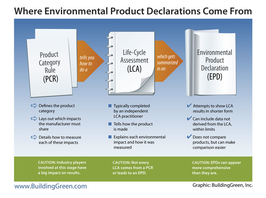 In the process of writing the feature article, we put together an at-a-glance chart to explain where EPDs actually come from and to show a few key points you should know about them. Click above to view a larger version. Click here to download a PDF for printing.