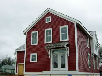 Probably the most notable advance made by vinyl manufacturers is the expanding range of colors. Vinyl siding used to come in pastels and neutral tones -- what some called "twenty shades of beige." Now it is also produced, at a higher price, in deeper and darker colors, such as hunter green, deep blue, and barn red. Torti Gallas and Partners, a new urbanist architecture and planning firm in Silver Spring, Maryland, has had extensive experience with vinyl siding, employing it in developments where budgets are tight -- particularly military housing and HOPE VI projects. Bombaugh, a design principal at Torti Gallas, welcomes the darker or deeper hues, referring to them as "colors you would get in a painted neighborhood."Don't you love that term, by the way--painted neighborhood? I used to think that "gated community" was synonymous with the upper class... but now, maybe if the houses around you are coated with latex, that's a clue that you're part of the upper crust. But seriously... vinyl has even added some modest energy benefits: