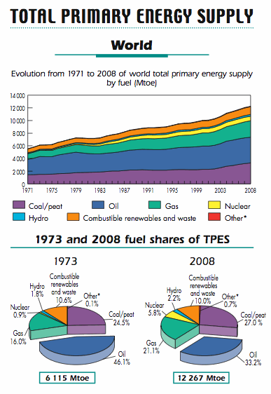 See membership options »For all the hopeful talk about renewables, they still qualify as “Other” in the IEA pie charts. That’s right: solar photovoltaic, solar thermal, wind, and geothermal all lump together at 0.7% of global energy supply.