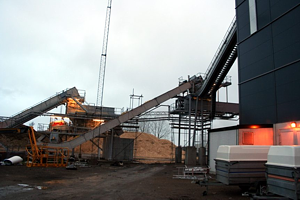 Wood chips are delivered to the boiler through the sloping, enclosed conveyor belts at the C4 plant.