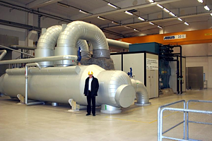 My host, Mr. Ehrlén, in front of the huge steam turbine at the plant.