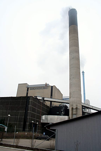 [Clicking an image in this post will load a larger version of the image. A slideshow of the images in this post, and more, is also available. Previous posts in the "Notes from Sweden" series include #1: How They Get Around, #2: Western Harbor in Malmo, and #3: The Scandinavian Green Roof Institute in Malmo.] In Brattleboro, Vermont, I'm involved in an effort to establish a wood-chip-fired combined-heat-and-power (CHP) plant that will — if we can pull it off — generate power and provide district heating through a network of buried, insulated pipes. It's pretty exciting, really. While district heat is used in many large cities, university campuses, and medical complexes, there are no systems I am aware of that serve smaller towns. Brattleboro could be the first! Brattleboro could have the first small-town district heating system in the United States, that is. In Europe — especially Northern Europe — district heating is very common. Half of all buildings in countries like Sweden and Denmark are heated in this way. I've been learning a lot about this on my travels here. I had two in-depth tours of wood-chip-powered CHP plants that provide district heat to homes and businesses — and I stopped briefly at the Lund Energiplant that is a wood-chip-fired, heat-only plant used for district heating in Lund. At the C4 Energi plant in Kristianstäd (pronounced "cree quon staad"), I met with CEO Göran Thysén and was given a tour by him and a young plant engineer, Henrik Mattson. The company is 100% municipally owned, employees 95, and comprises three businesses: electricity production and distribution; district heating; and broadband Internet distribution through a fiber-optic network.