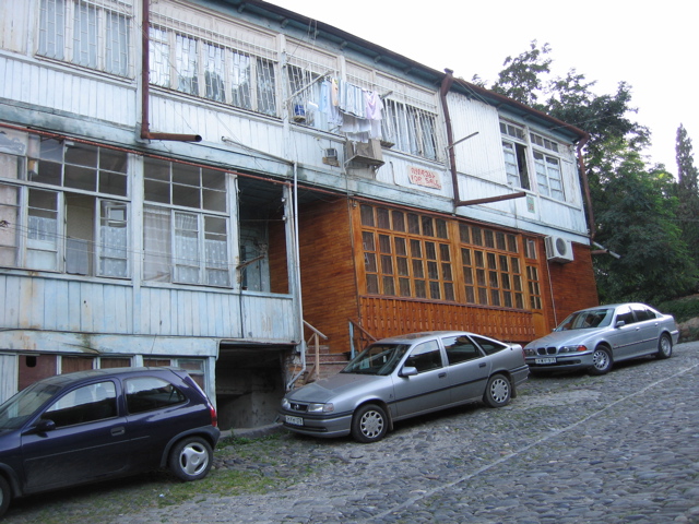 Typical street scene in Georgia with an older cooling unit on the left and a newer mini-split on the right: