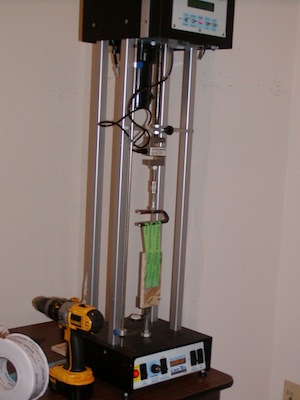 Tensile testing of a SIGA PSA tape on the smooth side of OSB, using a Com-Ten DFM5000 tester.