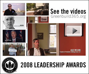 From the Father of Green Chemistry to that guy from This Old House, a couple dozen videos of speakers and presentations from Greenbuild '08 have been posted at Greenbuild 365, "USGBC's interactive green building learning portal." Among them, there's a very special episode in particular. You may have heard that our own Alex Wilson received a Leadership Award from the USGBC during Greenbuild. (Okay, the story's getting old, but the quality keeps getting better.) Check out Mister Wilson now!