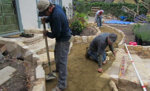 GraniteCrete was developed some 17 years ago by Geoff Smith. After years of testing and refinement over hundreds of installations, Smith patented his process in 2006 and really launched a serious business in 2008. Smith, who is president of the company, told me that nearly all installations have been done in California, most in coastal areas where freeze-thaw is not a concern. During installation, the dry-mix material, which is sold in bags and referred to as either an aggregate binder or aggregate admixture, is mixed at a 1:11 ratio with decomposed granite aggregate (a pre-consumer recycled waste material from granite quarrying and processing) that can be either 1/2" minus (material that passes through a 1/2" screen) or 3/8" minus. A small amount of water is added, creating a moist but not-flowing mix that is spread on the area being paved, raked even, and power-tamped. A key advantage during installation is that you can walk on it during installation. Full strength is reached after 28 days.