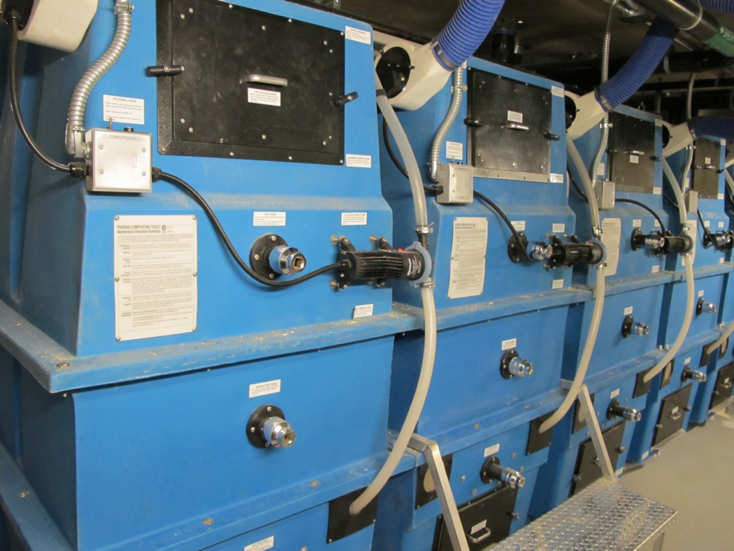 To get the building’s water consumption low enough to satisfy it entirely with site-harvested water required composting toilets. The four foam-flush toilets on each floor (24 total) deliver waste to ten Phoenix composting units located in the basement. As far as I know, this is the only building over four stories to rely exclusively on composting toilets.