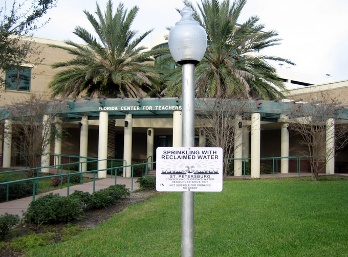 Reclaimed water (treated wastewater) is widely used for landscape irrigation in Florida.