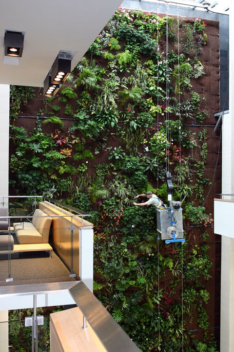This living wall, installed by Air Quality Solutions, Ltd., of Guelph, Ontario, at the University of Guelph–Humber, is designed to remove pollutants from the indoor air, but also offers biophilia benefits.