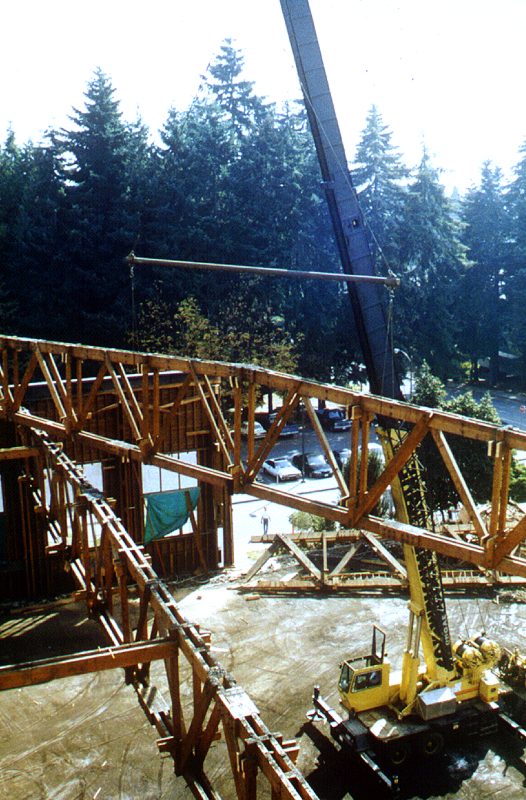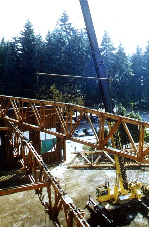 The Litchfield company salvages trusses from the University of British Columbia’s Armouries building. Timbers from the building were reused on the same campus.