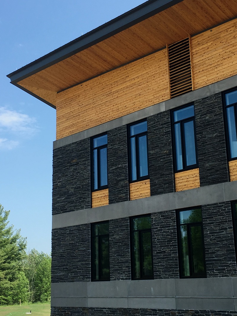 Locally sourced cedar and stone cladding give the new R.W. Kern Center a distinctive presence on the rural campus of Hampshire College in Massachusetts. The project, designed by Bruner/Cott & Associates, is seeking Living Building Challenge certification.