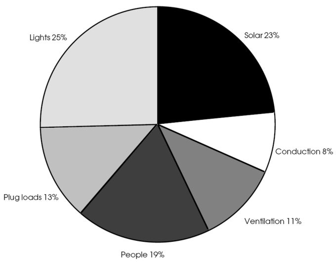 Distribution of cooling loads for a typical 40,000 ft2 commercial building.