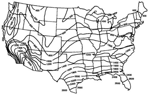 Total electricity use for cooling tells only part of the story, though. Even more significant is the effect of cooling on peak utility electric demand. Buildings account for 43% of summer peak loads in the U.S., according to E Source, an energy and environmental research organization affiliated with the Rocky Mountain Institute. The impact of peak cooling loads can be dramatic. A 1°F increase in temperature on a hot summer afternoon in Los Angeles, for example, translates into a 300-megawatt increase in peak electric load.