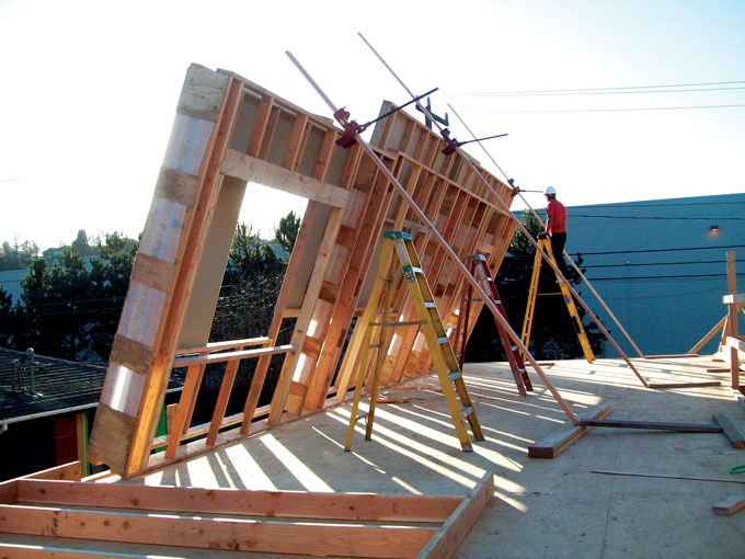 Dan Whitmore of Blackbird Builders is using a “Larsen truss” detail in this Passive House he is building in Seattle for his family. The 14" wall cavity will be insulated with dense-pack fiberglass to achieve approximately R-55.
