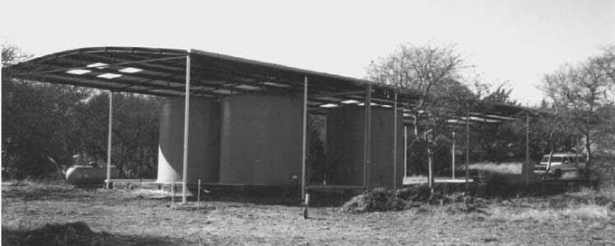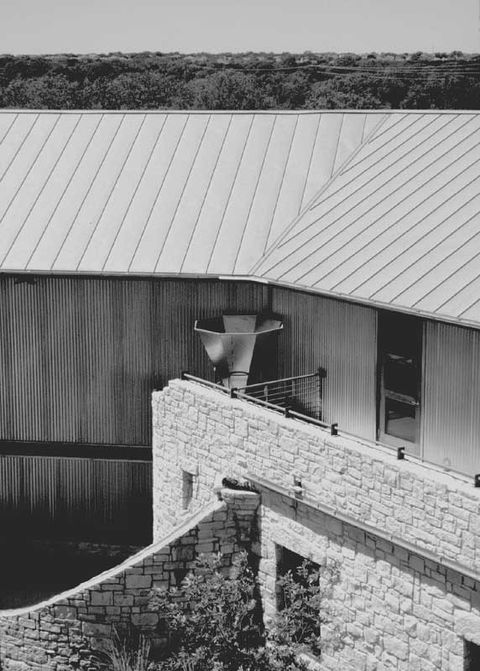 At this “water barn” under construction in Texas, rainwater is collected on the struc-ture’s roof and stored in tanks inside.