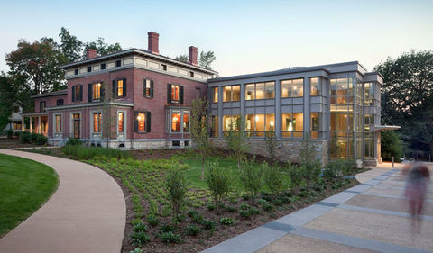 This welcome and admissions center at Champlain College in Burlington, Vermont preserves and expands an 1860s historic structure. According to Goody Clancy’s Jean Carroon, FAIA, the college moved forward with this project during the recession in order to provide economic benefit to the local community; the timing had the additional benefit of savings on the construction cost.