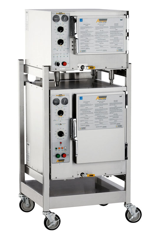 A standard commercial steamer consumes about 80,000 gallons of water per year—most of it tap water to cool the condensate. AccuTemp’s Steam’N’Hold, shown here, is a boilerless (or connectionless) steamer that dramatically reduces water use.
