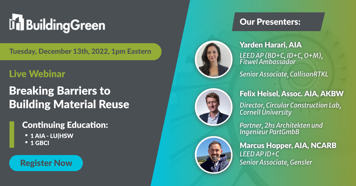 Live Webinar - Breaking Barriers to Building Material Reuse