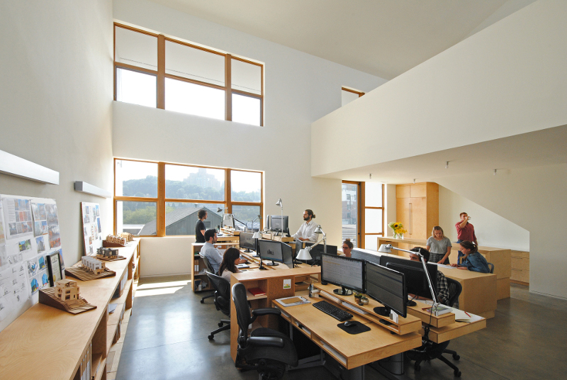 The interior of King Street, JW Architects' office building in Seattle, a Zero Energy Certified building.