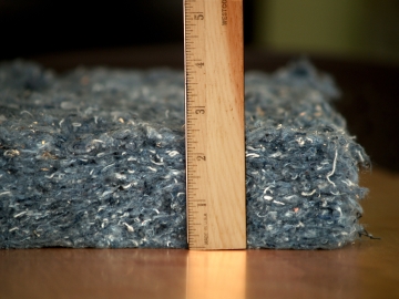 The worst flaw I found was that the product is too thin. After being compressed in bags for shipping from Ultratouch's Arizona plant, the post-consumer-denim cotton batts never regain their "loft." That means that insulation is going into wall and ceiling cavities with air spaces around it. Air that is completely stagnant insulates very well--at R-5, even better than Ultratouch's R-3.7. But air in wall cavities moves around with convection, contributing to heat loss and crippling the nominal R-value of the insulation. (Read more here on How Insulation Works.) I also found that the batts were too wide for 16-inch-on-center KD 2x4s (standard lumberyard kiln-dried sticks), leading again to air spaces due to poorly fitting batts.