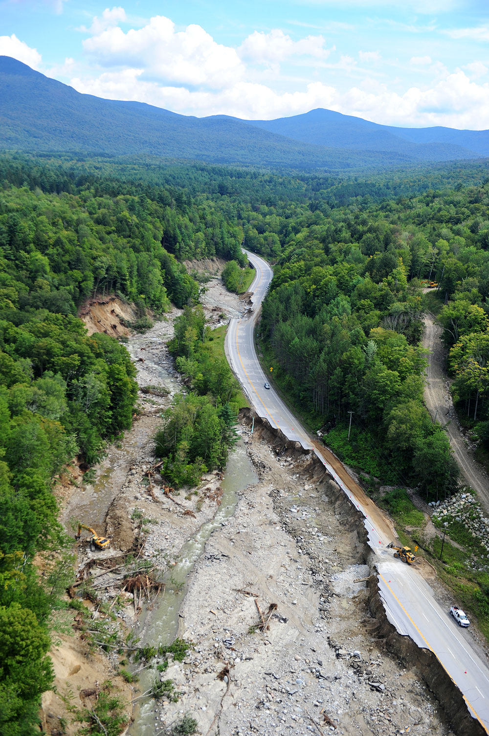 Route 4 near Killington, Vermont was closed for more than a month due to flooding from Tropical Storm Irene. Photo: Lars Gange and Mansfield Heliflight. Click on image to enlarge.