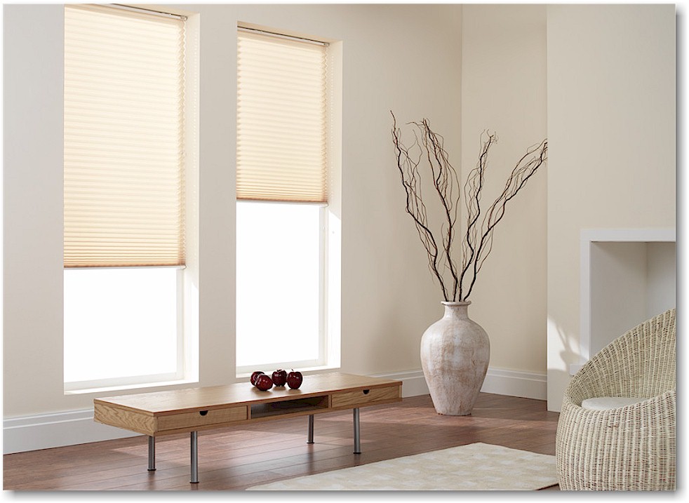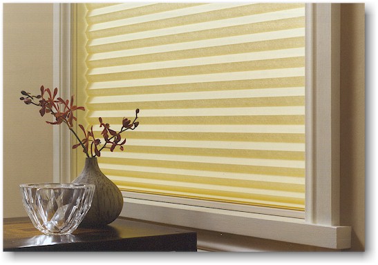 Interior blinds are most effective at blocking heat gain when they are reflective on the outside surface and fit in edge tracks, such as these Hunter Douglas Duet blinds.