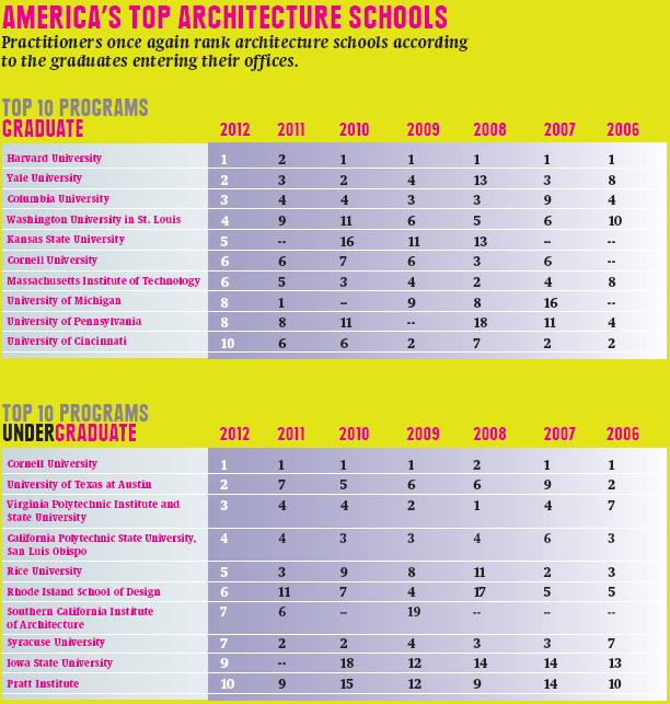 Architecture and design are practical professions, so being prepared for professional life has always been essential. In the depths of a grueling recession, though, these rankings have even more weight: for a recent graduate, being ready to design real buildings on day one could easily make the difference between employment and unemployment.