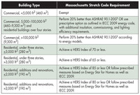 A recently adopted addendum to the Massachusetts state building codes, known as the “stretch code,” exceeds the 2009 International Energy Conservation Code (IECC) by 20%. The optional code sets performance standards for commercial buildings over 5,000 ft2 (460 m2) and residential buildings (see table above). According to Mike Guigli, technical... Read more