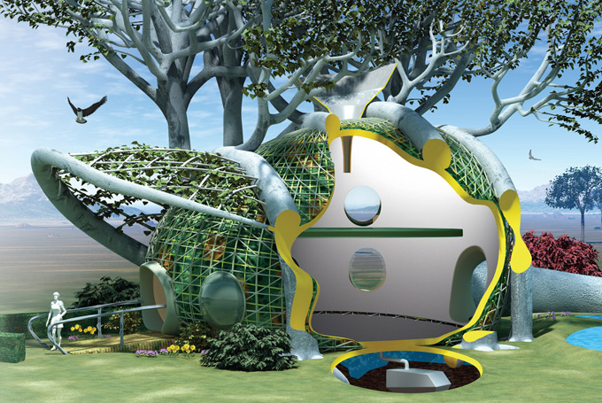 A different type of green home dubbed the “Fab Green Hab” would use intertwining plants to form the structural framework.