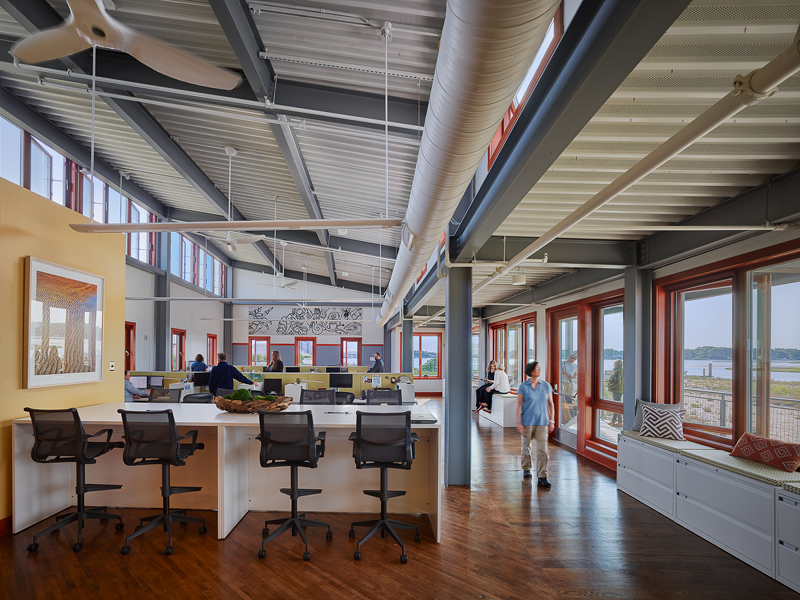 For an organization dedicated to raising awareness of the need to “Save the Bay,” the best metric of success has been the tremendous visitor flow at the new facility—30,000 visitors in year one, according to the foundation. Some of these visitors came across the facility by chance—attracted, in some cases, by the wind turbines. Regardless of how they arrive, “there’s always a moment during a tour of the building when you see the light bulb go off in the group’s minds,” says Gorri. “They get it, they understand it, and they leave here inspired to do or change one thing.”