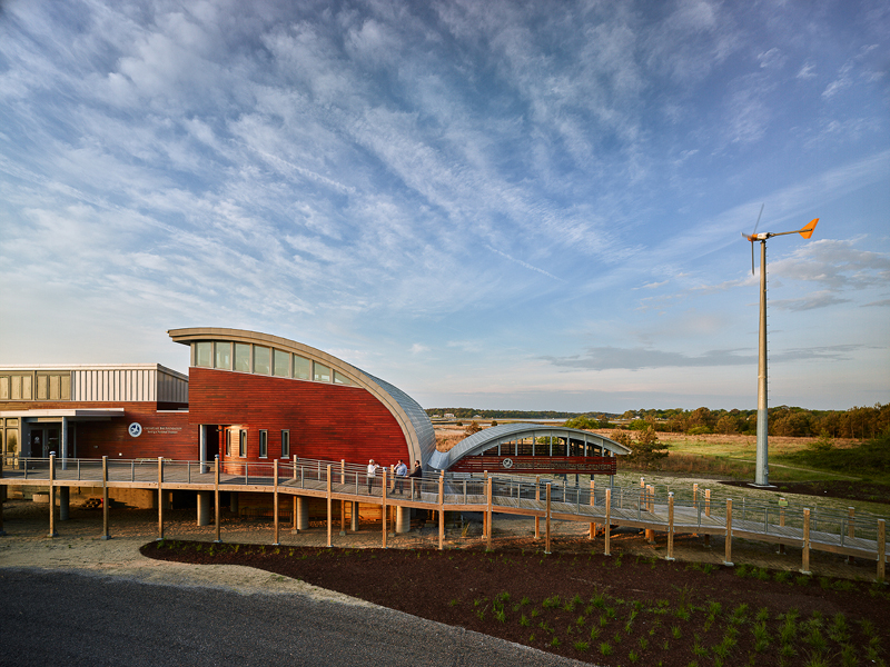Photo: Prakash Patel, courtesy SmithGroupJJR The Living Building Challenge (LBC) has a strict ban on greenfield development, with one exception. It allows for buildings in previously undeveloped—even ecologically sensitive—locations when they are there to help people learn about the place. As a facility that’s all about caring for and teaching people about nature, the Chesapeake Bay Foundation’s Brock Environmental Center fit that bill perfectly and achieved LBC certification in May 2016.