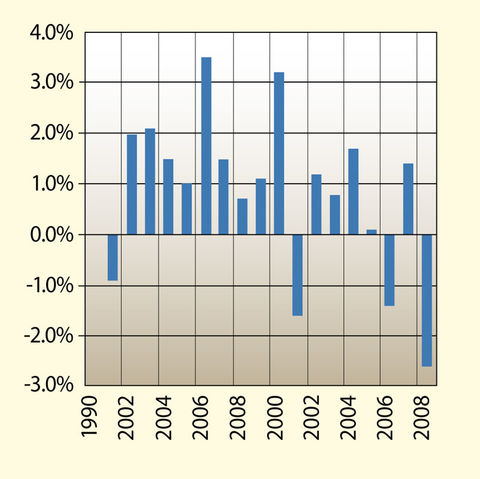 Annual Percent Change in C02 Emissions From 1991 to 2008
