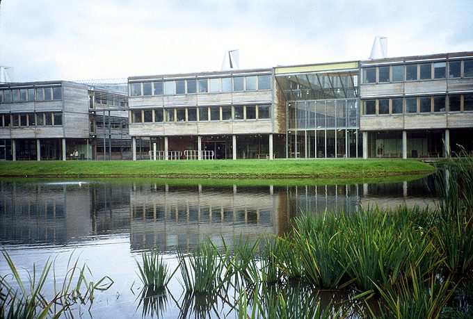 Located between an industrial area and suburban housing, the campus features energy-efficient, mixed-use buildings with green roofs. The buildings’ energy efficiency is due in part to a close collaboration between the architects, Michael Hopkins and Partners, and the mechanical engineers, Ove Arup and Partners, who worked together to design an airflow path that accommodates ventilation with minimal fan energy.