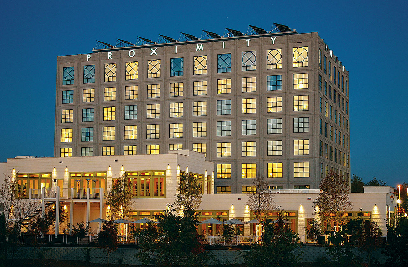 Proximity Hotel in Greensboro, North Carolina, was the first hotel to achieve LEED Platinum. The green hotel trend doesn't appear to affect revenues directly, according to new research.