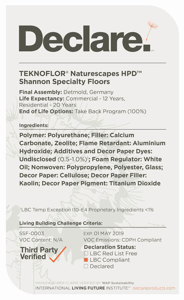 Currently, out of 800 Declare Labels, only 10 to 15 are third-party verified. Having this verification will go a long way toward improving transparency data and improving the sustainability of our material supply chain.