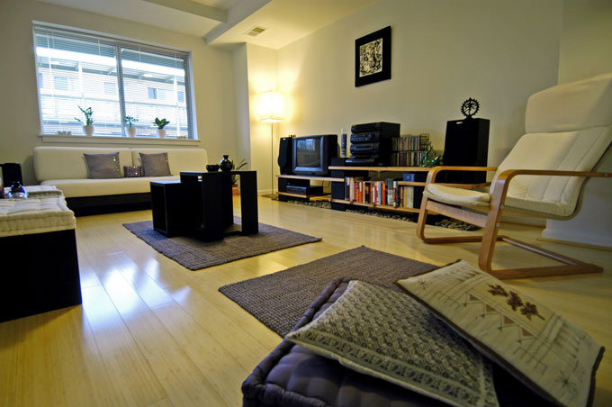 Living units in the Eastern Village Cohousing Condominium include bamboo flooring, linoleum flooring, low-VOC paint, sink aerators, and Energy Star® appliances.