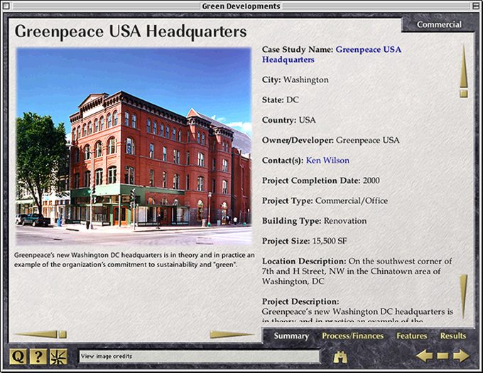 Much of the background material on green building is unchanged from the earlier version, but the meat of the CD—the gallery of case studies—now features over 200 projects. It also has expanded information on each project, additional images, and a larger screen display. Also updated for this version are the resource listings and Web links.
