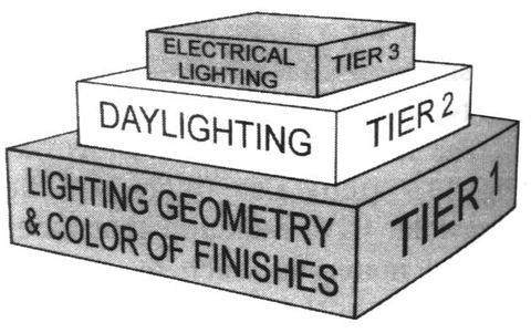 The best and most sustainable lighting is achieved by the three-tier design approach.