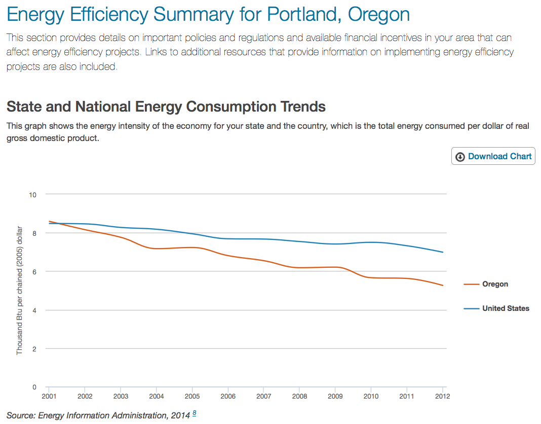 The tool returns results on a variety of energy metrics, as seen in this screen capture from the SLED website, saving hours of research.Energy Consumption Trends in Oregon