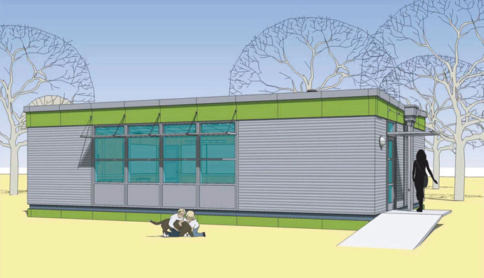 These concerns led the district, in partnership with the Council for Educational Facility Planners and the Emerging Green Builders chapter of the U.S. Green Building Council (USGBC), to sponsor a competition to design “a prototype for a prefabricated classroom unit that makes the learning cottage ‘the cool place to be.’” Design teams were encouraged to meet high standards of durability, safety, and health and to use USGBC’s LEED® Rating System as a roadmap to achieving environmental responsibility.