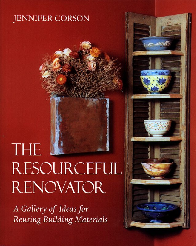 The Resourcfeul Renovator is another. It is a wonderful blend of art, science, architecture, and salvage that could grace any coffee table, reference shelf, or guest bath magazine rack. It takes building materials reuse to another level, with everything from relocating a building (even by barge) to designing a hat rack with faucet knobs and a raised door panel.