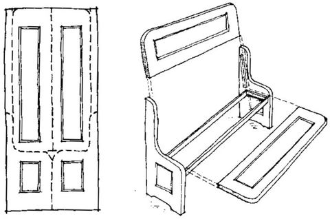 A four-paneled door can be cleverly reconstructed into a bench with little waste.