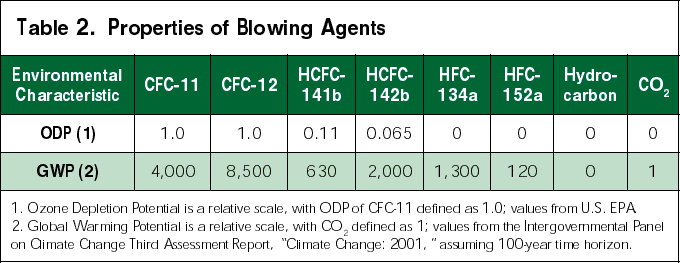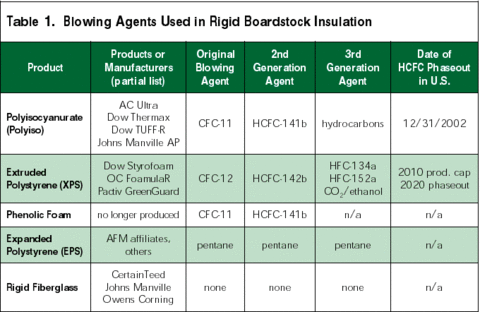 Table 1. Blowing Agents Used in Rigid Boardstock Insulation