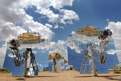 Stirling Energy System’s technology relies on an array of mirrors to focus solar rays on an engine, converting solar thermal energy to electricity.