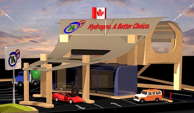 University Student Hydrogen Design Contest, sponsored by the U.S. Department of Energy, the National Hydrogen Association, ChevronTexaco, Natural Resources Canada, and Swagelok Company. The challenge was to design a hydrogen fueling station, considering technical specifications for hydrogen production, delivery, and storage; environmental impact; safety issues; profitability; and education and marketing to build community awareness. The University of Victoria’s proposal, which could conceivably be operational by March 2006, involves storing liquid hydrogen in elevated storage containers and vaporizing it to -4°F (-20°C) to allow for a four-minute fill-up. Details about the design are online at www.h2fuelstation.com.